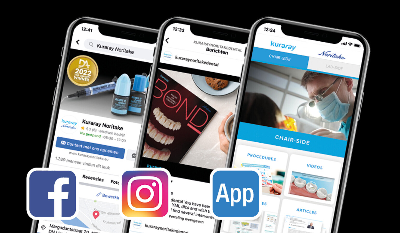 Al giorno d’oggi, uno dei modi più comuni con cui i dentisti acquisiscono nuove idee e ispirazione è attraverso i social media. Seguendo il nostro profilo Instagram, avrai accesso diretto a una galleria sempre aggiornata e pratica di post e video sui prodotti Kuraray Noritake Dental in azione.
