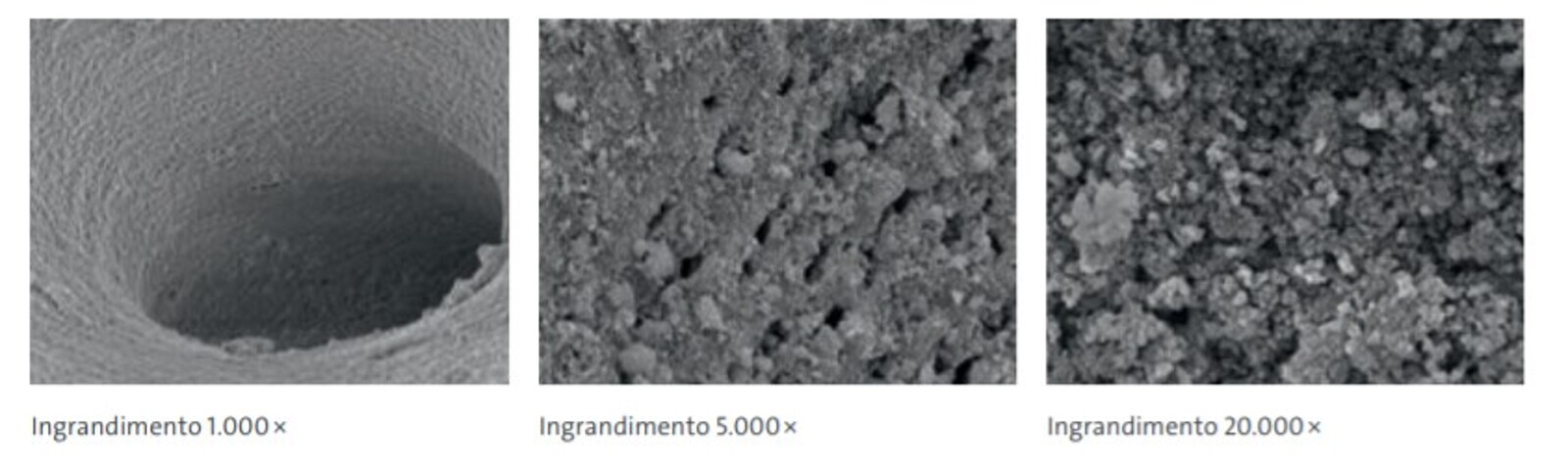 Micropori che consentono l’intrusione dei liquidi tissutali e un rapido assorbimento dei liquidi attraverso capillarità.
