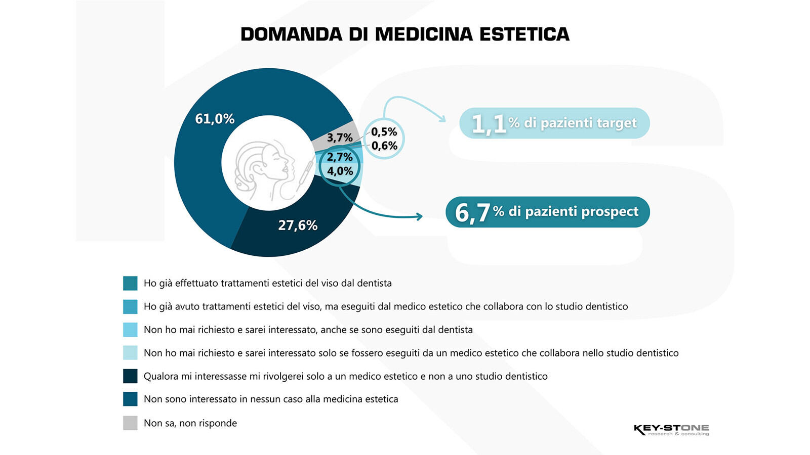 Il tema della medicina estetica all’interno degli studi dentistici continua ad essere tra i più dibattuti in ambito odontoiatrico. In KEY-STONE, abbiamo realizzato due importanti ricerche intorno a questa tematica: una sugli studi dentistici e l’altra sui pazienti. Oggi ho il piacere di presentarvi alcuni dati particolarmente significativi emersi grazie a queste ricerche.