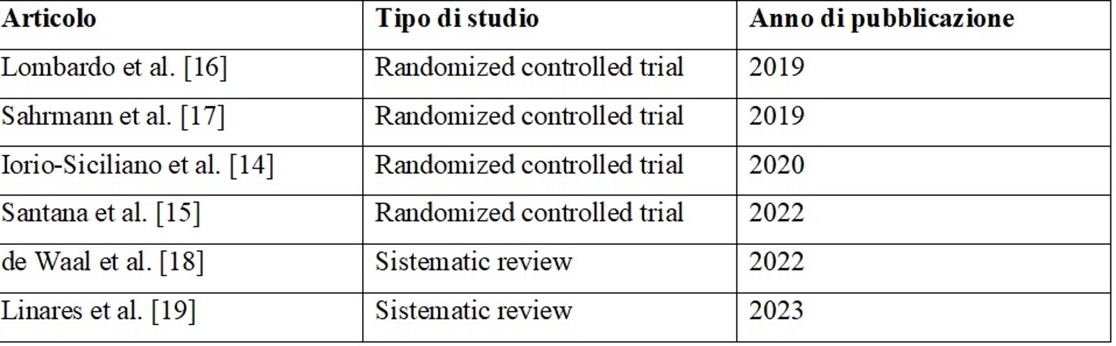 Tabella 2 - Articoli che sono stati analizzati per la narrative review.