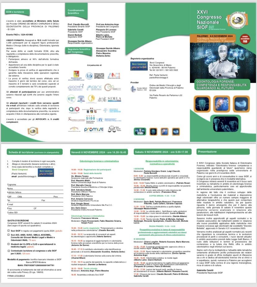 Si è concluso il 9 novembre 2024 a Palermo la due giorni del XXVI congresso nazionale SIOF (Società Italiana di Odontoiatria Forense), un appuntamento che si preannunciava centrale nel calendario dei convegni che riguardano l’aggiornamento scientifico-culturale dei professionisti della sanità pubblica e privata, con particolare riguardo e attenzione alle tematiche medico-legali di pertinenza dell’odontoiatria.