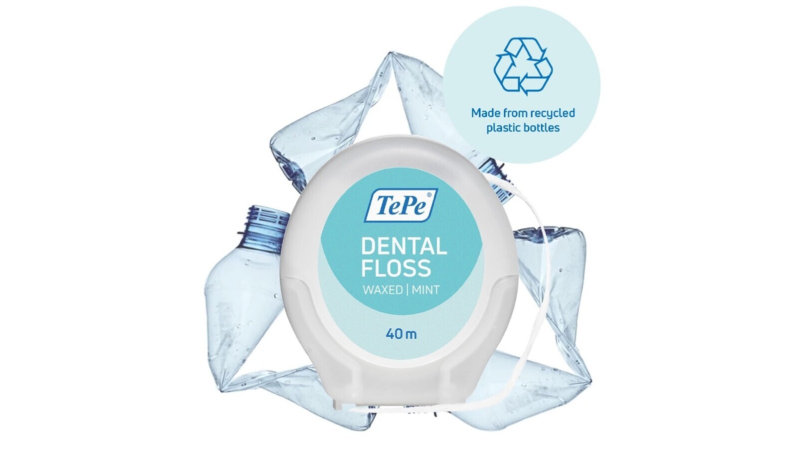 Il nuovo filo interdentale TePe è realizzato con bottiglie d’acqua riciclate. Anche il contenitore e la confezione esterna sono realizzati con materiali riciclati. Privo di PFAS, leggermente cerato e imbevuto di olio di avocado, il filo espandibile offre una pulizia interdentale efficace e piacevole con un risultato fresco e mentolato.