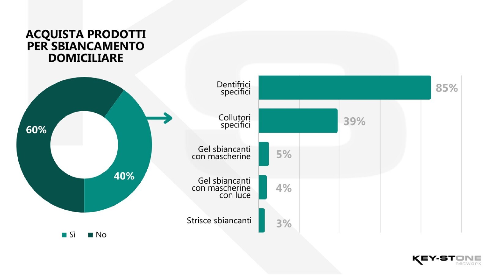 A conferma dell’apertura mostrata per questo tipo di trattamenti, abbiamo voluto indagare anche la propensione degli italiani ad acquistare prodotti per lo sbiancamento ad uso domiciliare. Il 40% delle persone intervistate dichiara di comprarli e in media la spesa mensile si attesta intorno ai 14 €.