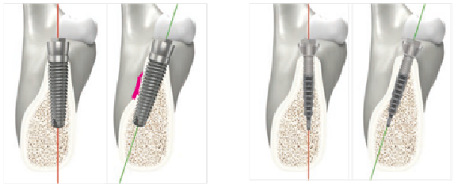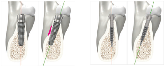 Fig. 1 - Differente inclinazione tra l’impianto a vite e l’impianto REX PiezoImplant. Quest’ultimo permette maggior posizioni.
