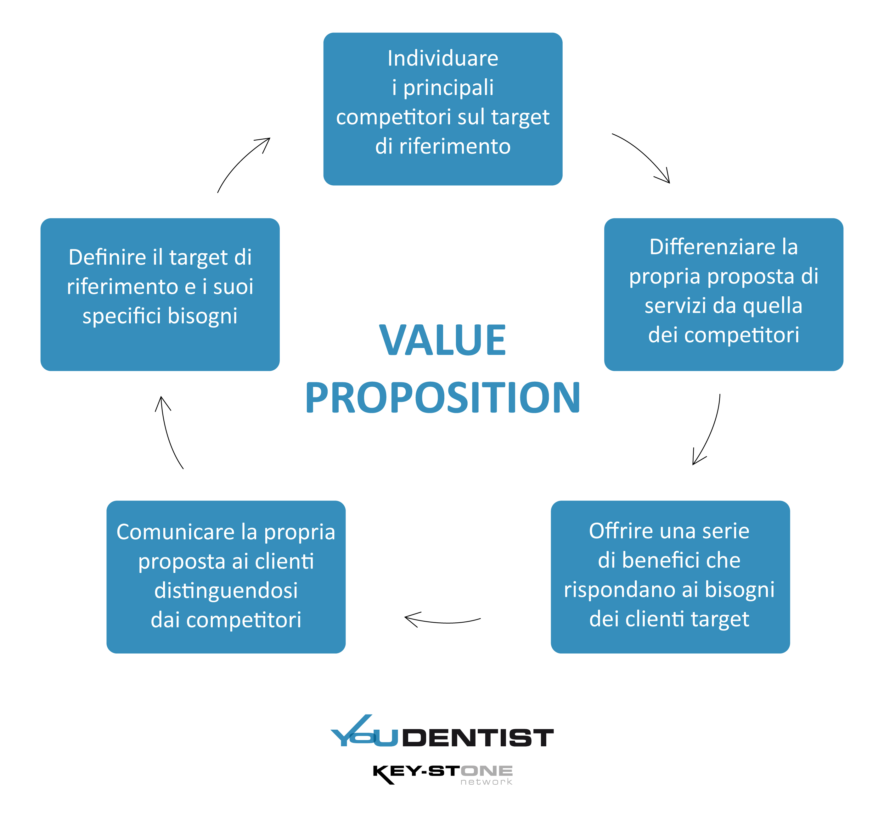 La Proposta di Valore risponde alla domanda: “Perché i clienti dovrebbero scegliere proprio il nostro studio e il suo sistema di servizi?” È quindi un passaggio centrale nella strategia d’impresa, una promessa di benefici unici (rispetto ai concorrenti) che può essere applicata in riferimento all’intera organizzazione o per gruppi di clienti (segmenti) con esigenze simili per specifici servizi.