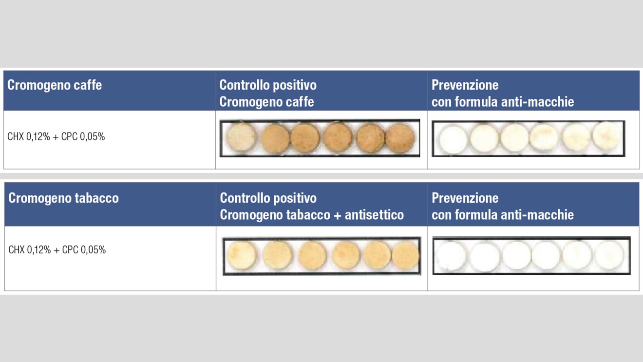 Valutazione in vitro di una nuova formulazione di dentifricio nella prevenzione e rimozione delle macchie causate dall’uso di antisettici quali la clorexidina (CHX).