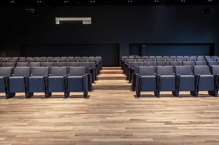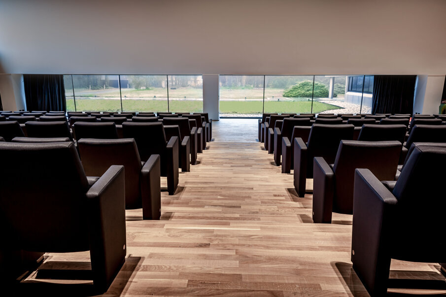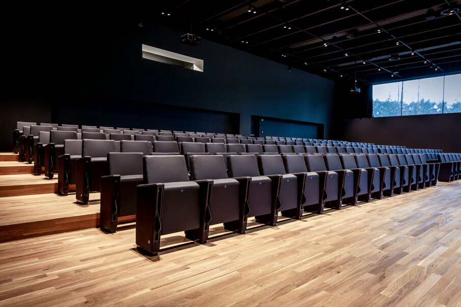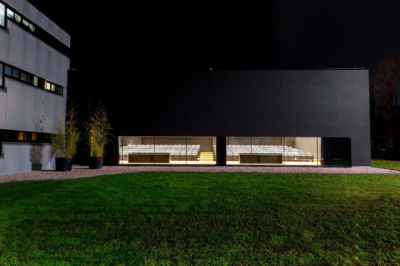 I 350 nuovi posti de IL TEATRO si integrano in un apparato di accoglienza all’interno di Sweden & Martina che già constava di una sala da 70 posti, due sale per corsi pratici da 44 postazioni complete per odontoiatri e odontotecnici e una vasta area ristoro, di nuova realizzazione, che si affaccia su 40.000 mq di parco con un concetto architettonico molto nordico, ossia la quasi scomparsa delle strutture antropiche grazie ad un sapiente uso del vetro.