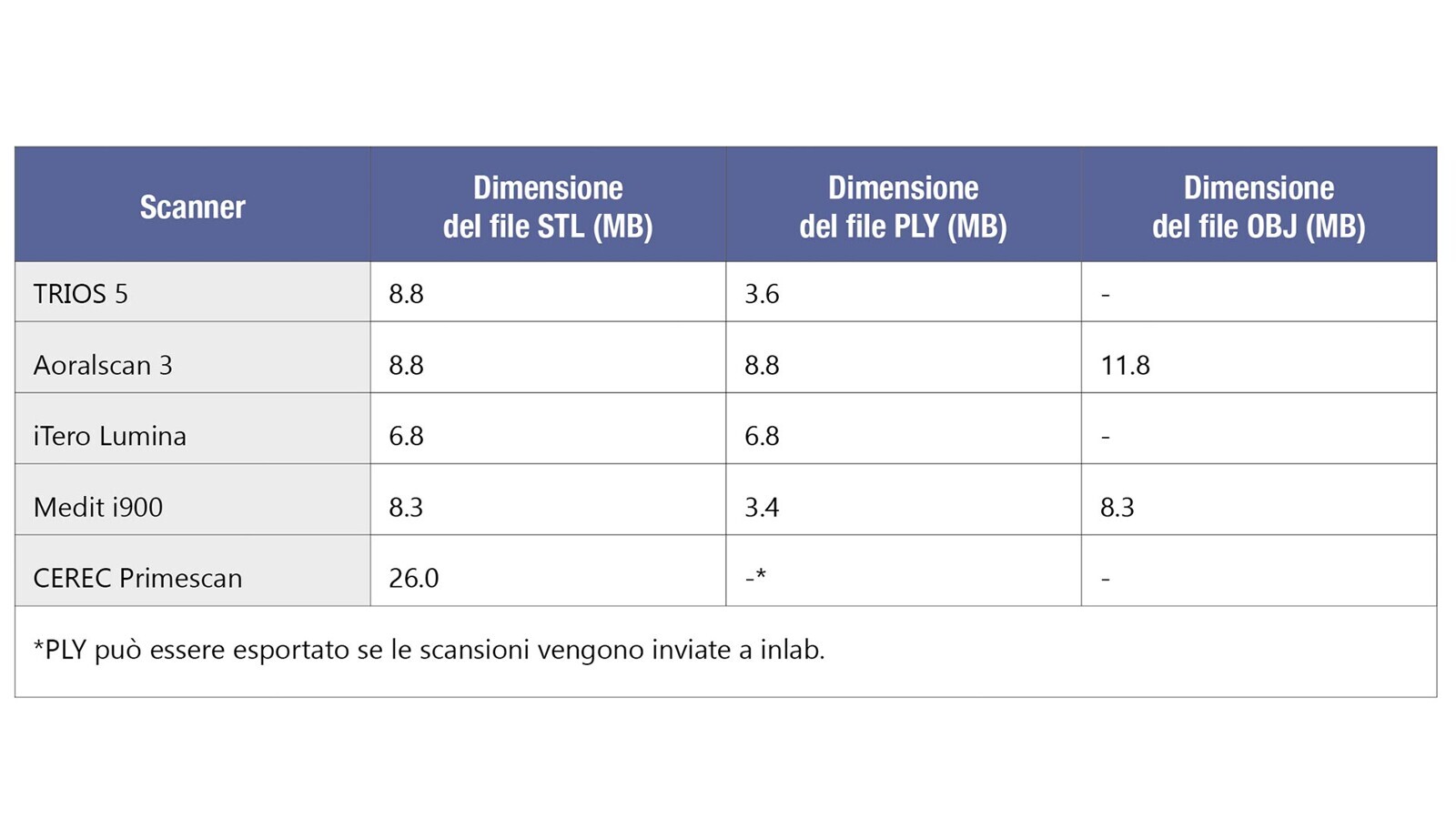 Tabella 1 - Dimensioni dei formati dei file che ciascuno scanner è in grado di esportare.