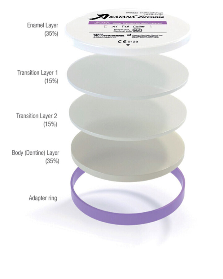 KATANA Zirconia ML di Kuraray Noritake Dental è stata la prima zirconia sul mercato dentale con gradazione cromatica integrata.