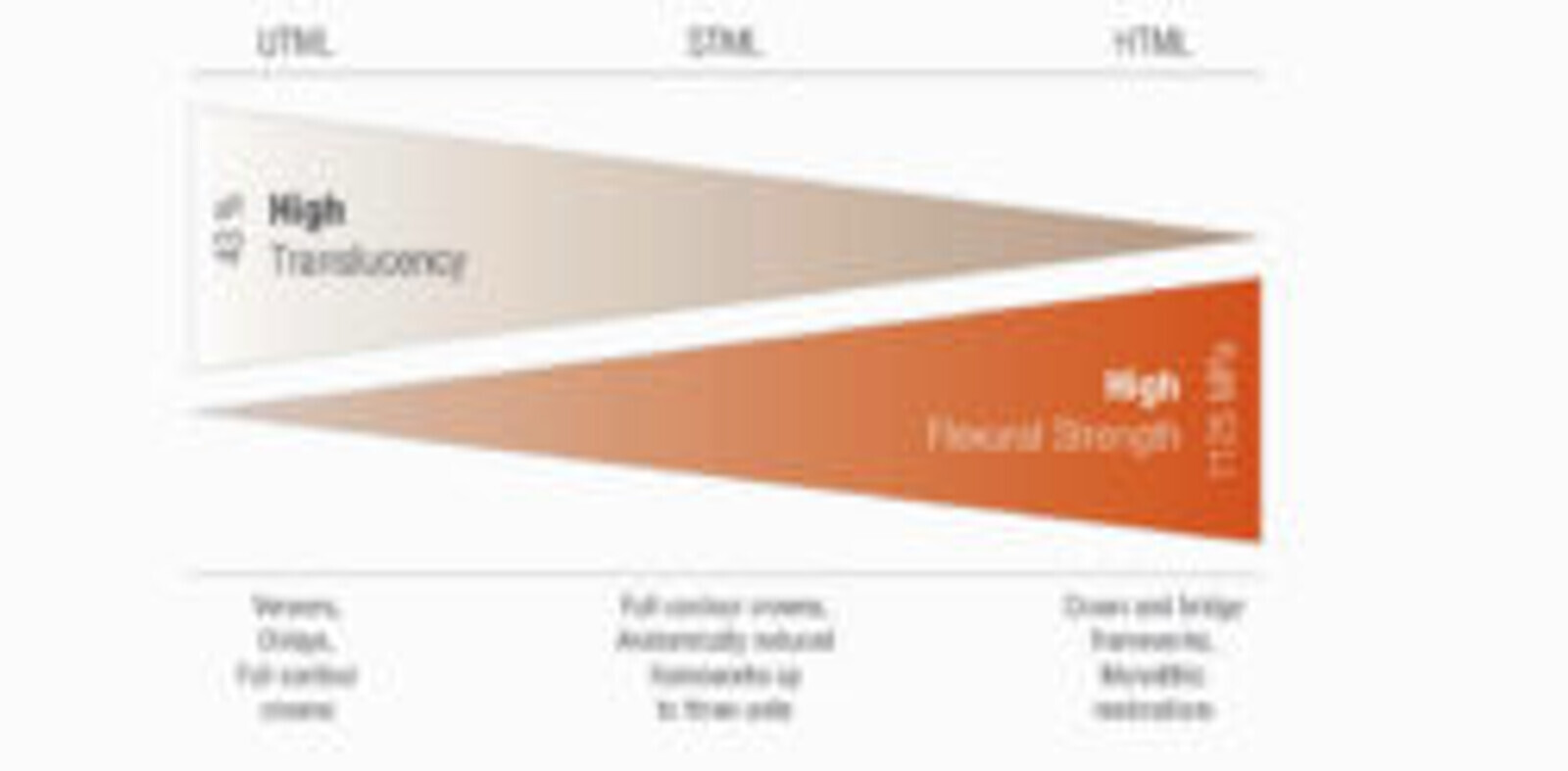 KATANA Zirconia HTML KATANA Zirconia HTML ha un alto livello di resistenza alla flessione ed è specificamente indicato per corone e ponti. È disponibile in numerose tonalità che coprono le diverse esigenze del laboratorio odontotecnico. Il materiale offre proprietà ottiche ottimali per le strutture, come nella trasmissione di luce incidente, il moncone rimane nascosto. La sua resistenza alla flessione è di circa 1.125 MPa.